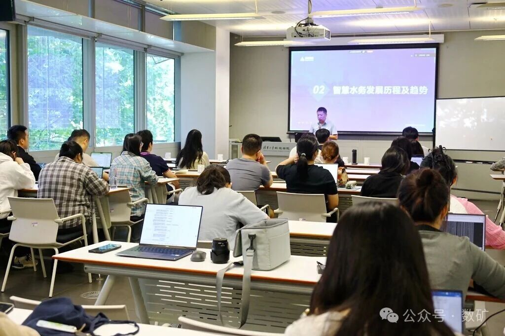 楊斌從國內智慧水務發展現狀和趨勢、金控數據的AI創新實踐以及對智慧水務創新的啟示等三個方面作報告,重點探討了人工智能在水務領域的創新潛力,并結合行業經驗,分享了多個智慧水務產品的開發思路和實踐成果。通過報告,與會師生了解了智慧水務從自動化、信息化、數字化到AI賦能的演進過程。結合浙江某大型凈水廠的案例,楊斌詳細介紹了當前智慧水廠的主要功能,包括數字孿生、工藝仿真、巡檢機器人、智能視頻、智能加藥、智能曝氣和數字化管理平臺等一系列技術的應用。他表示,通過實施綜合的智慧化技術,污水廠的生產、管理和人員成本可以得到有效降低,整體成本優化潛能巨大。他還分享了金控數據在水務+AI領域的創新實踐,通過基于AI創新的SVI污泥沉降檢測、微生物智能鏡檢、智能加藥、漏損計量儀、“六無水廠”等產品的介紹,生動展示了AI在水務行業的創新潛力,引起了與會師生的共鳴。“目之所及,皆可AI”,楊斌說,通過機器視覺、大模型等人工智能技術的應用,未來水廠將實現無人化,這也意味著該領域的創新潛力巨大,即將迎來行業發展的爆發期。